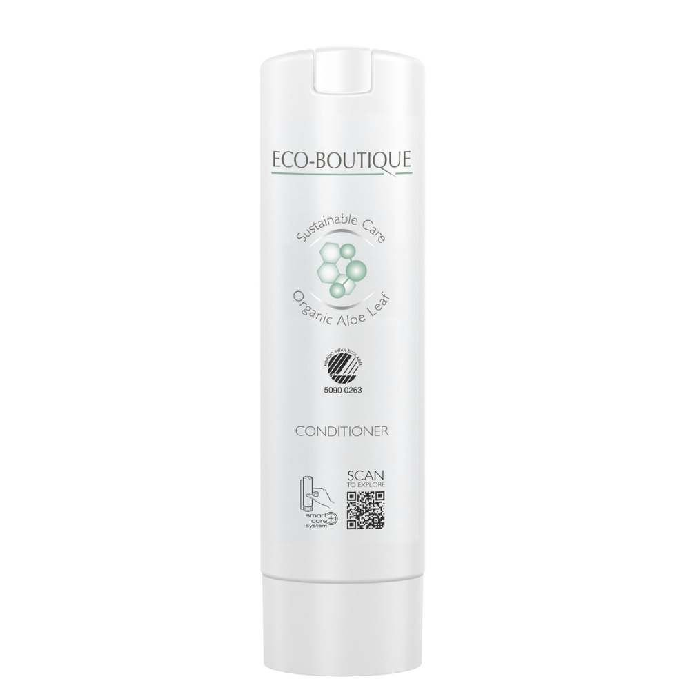 El Acondicionador 300ml para hoteles Eco Boutique - Smart Care, una opción sostenible y de alta calidad para hoteles que buscan productos respetuosos con el medio ambiente. Este acondicionador pertenece a la línea Eco-Boutique, reconocida por su compromiso con la naturaleza y certificada con la etiqueta ecológica Nordic Swan Ecolabel.