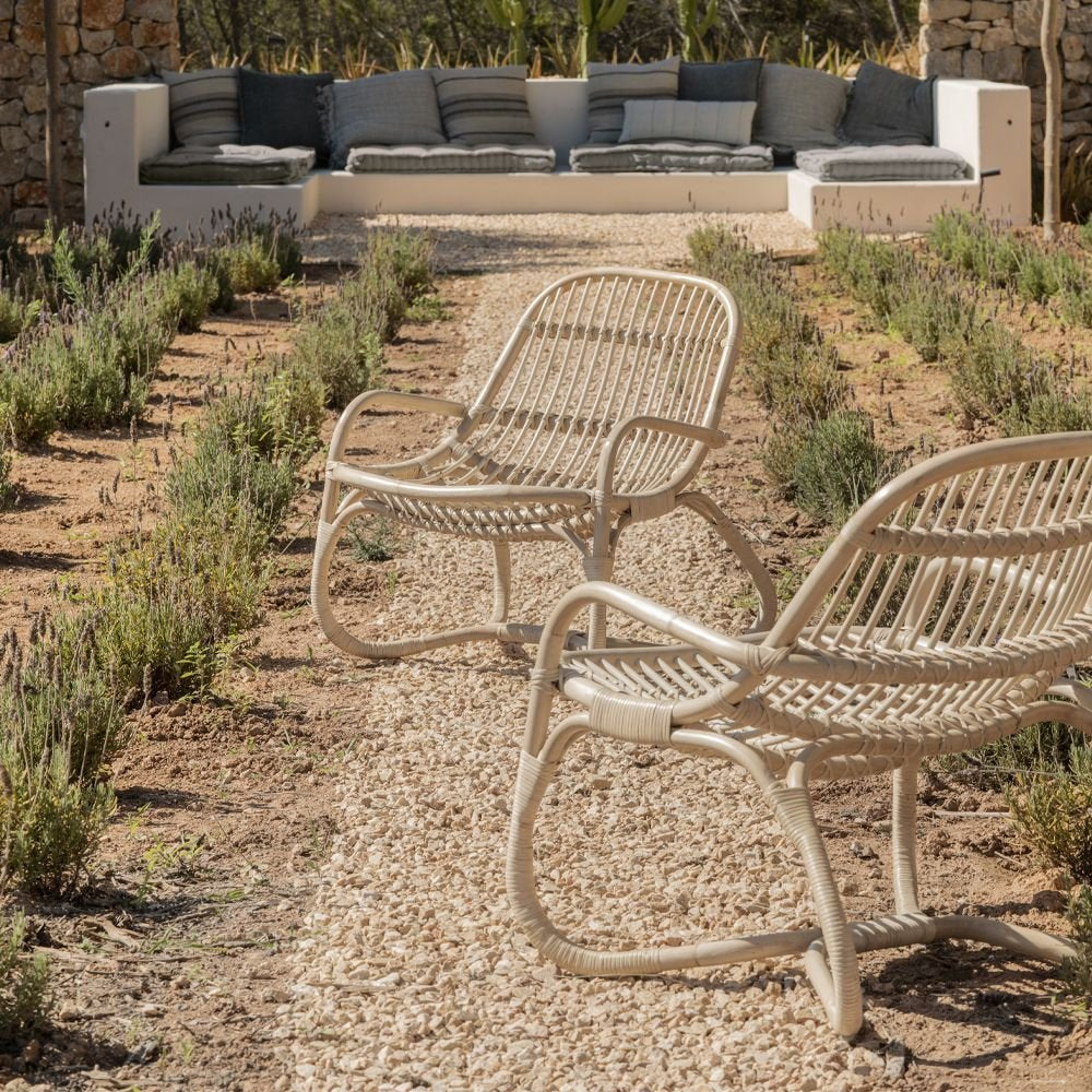 La butaca VIKARA se compone de una estructura de ratán natural pelado, en distintos grosores, ofreciendo a la vez estética, comodidad y resistencia. Un trabajo artesano que aporta una gran personalidad al producto, además de su diseño con carácter. Una pieza desenfadada que aporta un toque especial a la colección Lagranja x Dareels, perfecta para espacios dedicados al relax y al placer.