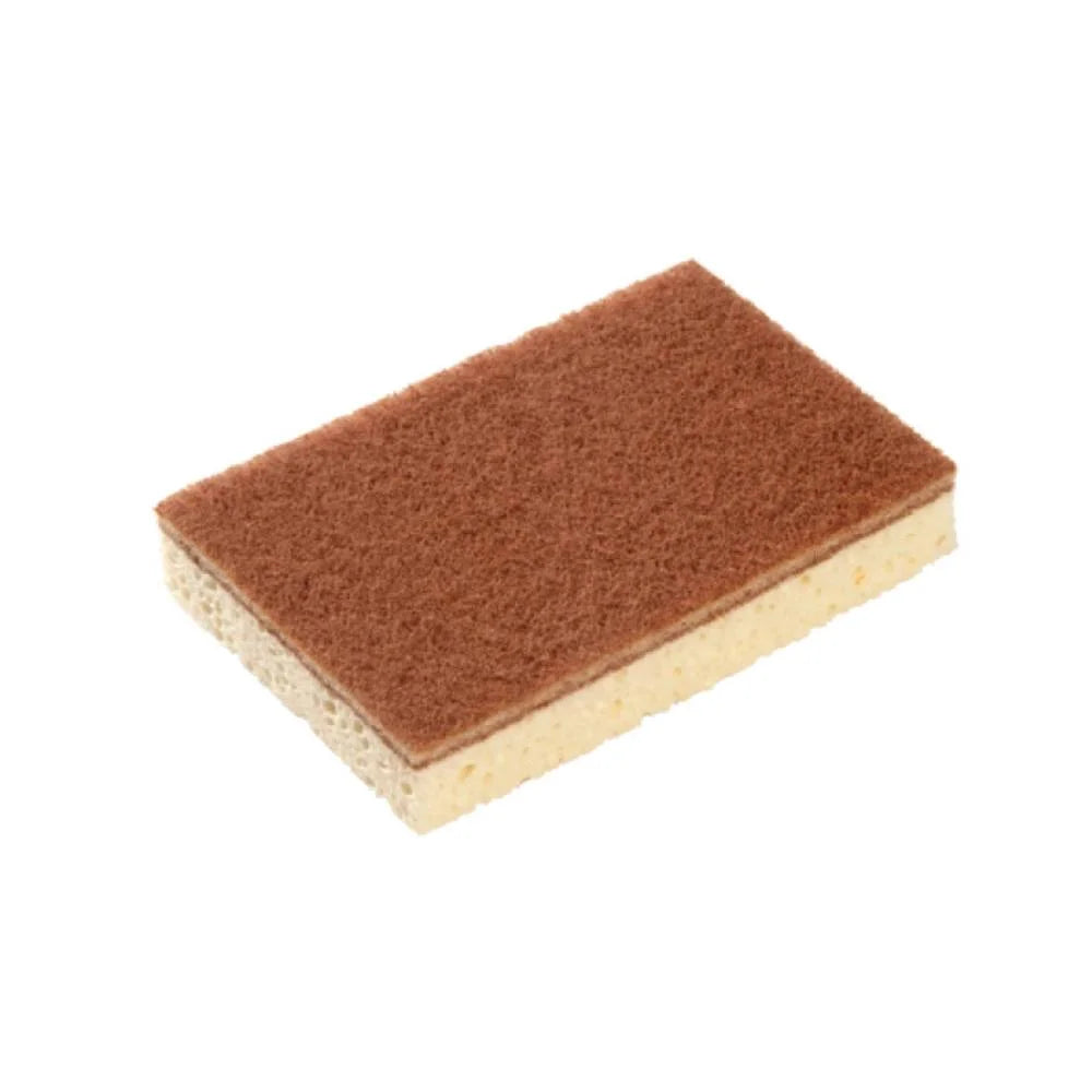 Estropajo ecológico con esponja de celulosa vegetal y fibras recicladas. Alta absorción y poder de fregado. Medidas: 84 x 128 mm.