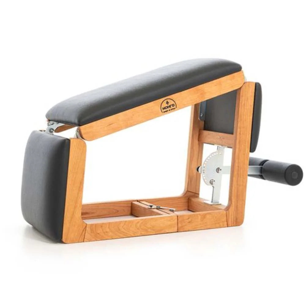 El NOHRD TriaTrainer para hoteles no solo cumple una función práctica, sino que también aporta elegancia al espacio donde se instale. Fabricado en maderas macizas de origen sostenible y acabado en cuero artificial de alta calidad (con opción de cuero auténtico), combina diseño y responsabilidad ambiental. Además, su ligereza y portabilidad permiten moverlo fácilmente o incluso utilizarlo como asiento cuando no se entrena.