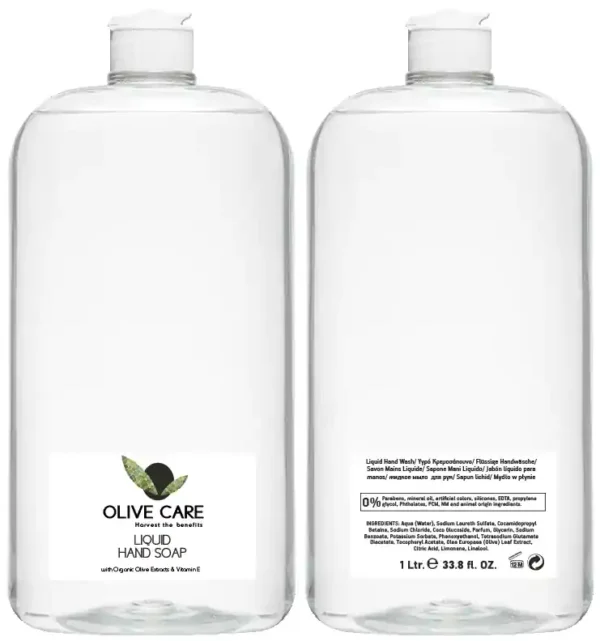 Le savon liquide pour les mains Olive Care est formulé avec des extraits de fruits et de feuilles d’olivier biologiques et enrichi en vitamine E, reconnue pour ses propriétés antioxydantes.